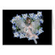 uma linda fada (fada) sentada numa cama de lindas flores azuis/brancas....