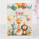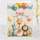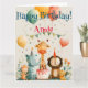 Traga alegria e encantamento ao dia especial do seu filho com nosso adorável design de celebração de aniversário de animais! Esta trabalho de arte deliciosa mostra uma alegre reunião de animais bonitos, cada um vestindo chapéus festivos e rodeado por balões coloridos.