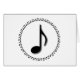 Neste simples design preto e branco, uma oitava nota é cercada por oitavas notas num padrão circular. Ideal para coro, coro e banda. Seria um presente excelente para um diretor, compositor, acompanhante ou pianista. Use o botão personalizar para adicionar nomes/mensagens a este design, alterar sua posição ou tamanho.