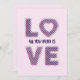Um charmoso design de cartão de Namorados com a palavra "Amor" feito inteiramente a partir de formas cardíacas, calor radiante e afeto. O texto vibrante "Tudo o que você precisa é amor" acompanha o design, ambos enfeitados em tons suaves de rosa e roxo. Este tema romântico e lúdico mistura perfeitamente elegância e capricho, celebrando o amor em sua forma mais bela.