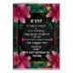 Este espantoso design de borda floral apresenta flores roxas, vibrantes, simétricas, cor-de-rosa e roxas, com uma folhagem verde, criando uma elegante e atraente para os olhos. O fundo preto profundo fornece um contraste perfeito com as cores vibrantes, fazer-o ideal para convites para casamento, cartões de salvamento ou outros artigos de papelaria com tema de casamento. O luxuoso trabalho de arte floral é perfeito para uma estética de casamento romântica e moderna. Adicione uma mensagem pessoal ou detalhes no centro para torná-la verdadeiramente exclusiva para o seu dia especial.
