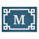 Design monograma com decoração de borda chave grega sobre fundo azul verde