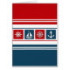 Design náutica com barco à vela, âncora, bússola e decoração das rodas de vela em fundo listrado