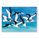 Um rebanho do vermelho brilhante faturado, skimmers preto e branco que cruzam contra um céu azul surrealista. :: Aguarela original por Barbara Bayer