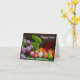 Cartão postal do adorável coelho de Páscoa verde com bolas de picles reais e tulipas roxas. Texto personalizado na frente e dentro