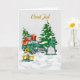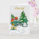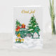 Os gnomos suecos divertem-se com o cartão de Deus Júlio ou Feliz Natal. Sr. & Sra. Gnome vestidos de verde com um caminhão verde carregado com uma árvore de Natal. Tipo de cartão para sua própria mensagem escrita