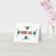 Cartão de Natal sueco com a tradicional design escandinava em verde e mensagem de Natal em língua sueca (Deus Jul, feliz Natal em sueco). Mensagem dentro diz 'Deus Jul'.