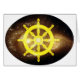 Símbolo Dharma Wheel sobre fundo celeste castanho