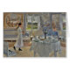 Uma pintura em blues macios de duas meninas colocando uma mesa para uma festa.