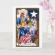 Arte do vintage de Washington que adota a estrela cinco aguçado. O interior do cartão lê: Desejando lhe um Dia da Independência muito feliz