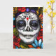 Dia floral vibrante da imagem morta. A joia rica em flores tonadas rodeia o rosto de uma mulher pintada para o Dia Mexicano dos Mortos. Tome tempo para cheirar os rosas, e envie um cartão de saudação adorável...