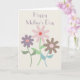 Lindo cartão do Dia das Mães com design colorido e simples. Esta imagem moderna apresenta um trio de margaridas em rosa, roxo e marrom e tem um estilo moderno de meados do século. Este cartão é em branco por dentro, permitindo que você adicione sua própria mensagem.