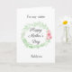 Um cartão do Dia das Mães com um loureiro em aquarela verde e flores cor-de-rosa para uma irmã bonita, que você poderá personalizar facilmente na frente com o nome dela. A mensagem no interior deste lindo cartão do Dia das Mães para uma irmã diz uma mensagem sincera, que você também pode personalizar se quiser. A parte de trás tem o mesmo loureiro em aquarela verde com flores cor-de-rosa e um espaço para você colocar o(s) nome(s) da(s) criança(s) ou o que você quiser. Uma lembrança doce do Dia das Mães que é personalizada e certamente será apreciada.