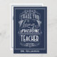 A maneira perfeita de mostrar seu apreço a um professor. Este na moda mostra a mensagem "Obrigado por ser um professor espetacular". Em azul escuro e branco, esta tipografia na moda faz um cartão moderno e atraente para os olhos.