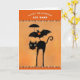 Creative Halloween com um gato preto engraçado e um morcego acrobata com um guarda-chuva. Adicione o nome dele ou dela para personalizar.