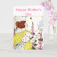 Ilustração de uma mulher num jardim Hollyhock com uma borboleta