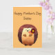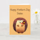 Feliz Dia de as mães para minha querida irmã com um lindo ouriço de desenho animado segurando um buquê de flores.