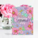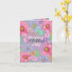 Este cartão de saudação do Dia das Mães é uma bela expressão de amor e apreço. O cartão é adornado com um vibrante e colorido design floral pintado à mão que imediatamente pega o olho. Grandes flores cor-de-rosa e flores roxas menores são intricadamente detalhadas, mostrando sua beleza natural contra um pano de fundo de matizes macios e pastéis. O centro do cartão apresenta a mensagem sentida "Feliz Dia das Mães" escrita em uma elegante letra preta e uma fonte moderna de rosa claro. Isto fornece um impressionante contraste às cores vivas das flores, fazer o sentimento se destacar.