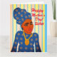 Esta bela carta apresenta uma irmã afro-americana num vestido azul e dourado, com um cachecol na ponta da risca. Dê a sua irmã esta bela carta para o Dia de as mães. Personalizar este cartão para uma tia, primo, mãe etc.,