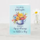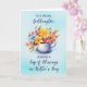 Celebre o papel especial que sua afilhada tem no seu coração com este elegante cartão do Dia das Mães. Uma equipe segura cheia de flores coloridas é colocada contra um fundo de aquarela azul-claro suave, criando uma design pacífica e adorável. Criado por uma afilhada que é também uma mãe maravilhosa, esta carta combina beleza e bênção. A mensagem dentro expressa um apreço sincero e oferece uma oração gentil pela graça e pela paz. É uma maneira suave de honrar a sua fé, o seu espírito encorajador, e o exemplo amoroso que ela compartilha.
