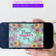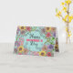 Este design deste cartão de saudação personalizável do Dia das Mães é dominado por uma vibrante fronteira floral que envolve a mensagem central, criando um quadro quente e convidativo. As flores, no florescimento do cheio, exibem uma variedade de cores, incluindo amarelo, rosa, roxo e vermelho, cada uma meticulosamente detalhada para criar uma estética dinâmica e viva. A cor de fundo é um chocalho macio, que complementa as cores vibrantes das flores e adiciona ao calor geral do design. No centro do cartão, as palavras "Feliz Dia das Mães" são redigidas elegantemente numa letra preto cursiva, destacando-se contra o pano de fundo colorido. A combinação de cores vívidas, designs florais intrincados e tipografia elegante faz deste cartão um símbolo delicioso de amor para celebrar a maternidade. A mensagem dentro da placa também é totalmente personalizável.