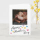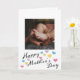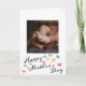 Adicione seu cartão de Dia de as mães fotográfico. A frente deste cartão de Dia de as mães tem um lugar para você facilmente adicionar sua própria foto, há uma saudação de Dia de as mães Feliz na parte inferior junto com corações coloridos. O dentro lê uma doce mensagem para a mãe, que você também pode editar facilmente. As costas têm um lugar para você colocar o nome da criança junto com a mamãe, mãe, etc. Um doce e único guardião para o Dia de as mães.