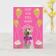 Imagem super fofa de um laboratório amarelo, toda vestida para Dia de as mães! Cartão perfeito para mostrar a sua mãe especial o quanto a aprecia. Personalize as mensagens e divirta-se!