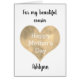 Um cartão de Dia de as mães de primo personalizado que apresenta um coração de ouro, que diz "Dia de as mães Feliz". A mensagem do dentro diz: "Espero que hoje e todos os dias estejam cheios de muito amor, riso e diversão. Feliz Dia de as mães!" A mensagem do Dia de as mães pode ser facilmente editada. A parte de trás deste cartão de Dia de as mães primo tem o mesmo coração junto com o ano, que você pode facilmente editar.