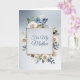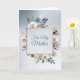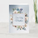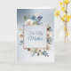 Aqui está um cartão de Dia de as mães feminino muito bonito com um incrível quadro floral de rosas azuis e brancas na frente. Um quadro quadrado rosa dourado brilhante está junto com as flores, e seu texto personalizado está em azul no centro. A imagem e o texto são colocados sobre um fundo prateado azul gradiente. A dentro esquerda tem o mesmo plano de fundo com outra imagem de buquê rosa azul e branca. Seu texto personalizado está em azul correspondente no lado direito; use o sentimento incluído ou personalize facilmente para si mesmo. Elegante!
