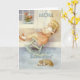 Cartão de saudação de dia de as mães ou aniversário ao qual você pode adicionar sua saudação especial. Vintage pintando de uma adorável garotinha balançando seu bebê com seu filhote perto de perto.