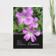 Feliz cartão de Dia de as mães para um primo. O cartão tem uma imagem de cranesbill geraniums em tons de cor violeta e lavanda. Cartão de saudação botânico e floral. Arte, imagem e copyright © Shoaff Ballanger Studios.