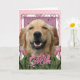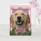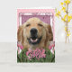 Cartão Dia de as mães - Tulipas cor-de-rosa - Retriever d