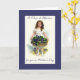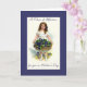 Cartão de Dia de as mães com uma jovem segurando um cesto de violetas.