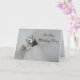 No dia do seu casamento prometa uma vida de amor para sua nova esposa com o elegante Cartão de Dia de Casamento de Anéis de Casamento. Adicionar um dentro de mensagem pessoal opcional. Este clássico cartão de casamento personalizado apresenta uma fotografia de um anel de noivado de diamante e conjunto de bandas de casamento com um fundo de tula branca.