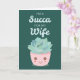 Mande saudações de Namorados para sua esposa com este cartão de uma planta suculenta no estilo kawaii em um pote e as palavras chamativas "Sou uma succa para minha esposa" no cobrir. © Ness Nordberg