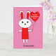 Um cartão de Dia de os namorados de coelhinho fofo para crianças com um rabisco que fiz vestindo um vestido vermelho e segurando um coração vermelho, que diz Feliz dia de os namorados. Você poderá personalizar a frente com o nome dela. O dentro lê uma mensagem de Dia de os namorados, que você também pode personalizar facilmente. Excelente para um coelhinho especial na sua vida!
