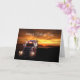 Um dia especial para o motorista do caminhão, pai ou Pai. Uma grande plataforma de 18 rodas passa pelo pôr do sol ou pelo nascer do sol num cartão para todos os pais que conduzem caminhões.