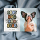 Trate um dono de cão para este cartão de dia de os pais retrô legal com o ditado 'MELHOR PAI DE CACHORRO NUNCA' em uma fonte de 60 anos, flores brancas em negrito, uma foto de seu cachorro giro e o nome dos animais de estimação. Este cartão de saudação personalizado seria perfeito para o dia de os pais ou para o aniversário de alguém!