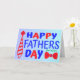 Um Design de placa de Dia de os pais feliz e divertido, com um fundo azul gradiente, com duas gravatas na frente, com a expressão " Dia de os pais feliz. Um belo cartão brilhante para dar a qualquer pai/avô, pai ou mesmo a alguém que seja como um pai . o cartão pode ser personalizado na frente logo acima do arco com um nome ou parente. O dentro de mensagem também pode ser alterado para fazer deste um cartão personalizado de excelente.