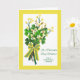 Ruas, o Dia de Patrick. Para um querido Pai e Stepmama. Celebre a temporada de primavera e as cores de primavera com este cartão em tons de verde, amarelo e branco. Pedaços de salgueiros, pavimentões, shamrocks e ramificações florescentes são mantidos juntos com um arco de aparência realista (não real, com duas dimensões). Art, image, and verse © Shoaff Ballanger Studios, 2021.