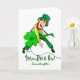 Rua feliz, cartão de saudação do dia de Patrick para uma neta. Um duende pisca com sua guitarra de rock shamrock nesta Rua. Cartão engraçado perfeito para o amante da música em sua vida. Cabeça de Leprechaun cortesia de Liftarn/OpenClipArt. Imagem e direitos de autor © Shoaff Ballanger Studios.