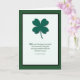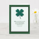 Um cartão simples e lindo com um trevo verde colocado em um fundo branco com uma borda preta e verde. Este cartão inclui uma bênção irlandesa na frente e é adequado para qualquer amigo ou familiar. Personalize o nome do destinatário e o seu nome.