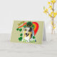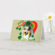 Grande engrenagem para celebrações do dia da pancadinha do St. Merle azul Sheltie ostenta um chapéu do leprachaun entre os trevos e o arco-íris. Você estará vestindo o verde com sua raça favorita do cão este março!