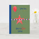 Cartão do Dia do Trabalho em verde com uma estrela vermelha, um balão e uma falha falsa. O dentro só pode ser mudado. Obrigados para a Creative Fabrica para alguns dos elementos na design.