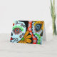 Este cartão tem uma imagem de uma das minhas pinturas chamada "Dos Caras". Minha inspiração para todo meu trabalho vem do meu país (México) e isso em particular é inspirado na celebração do Dia de Muertos. Nesta comemoração, recordamos as nossas amadas com felicidade e respeito.