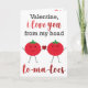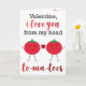 Este cartão do Dia dos Namorados é fofo e cheio de piadas com a frase "Eu te amo da cabeça aos pés" usando tomates como o menino e a menina apaixonados. Escreva seu próprio cumprimento especial dentro do cartão para o seu amor.