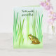 Este cartão do dia dos pais caracteriza um sapo verde fêmea pequeno com uma barriga amarela que senta-se entre as gramas na lagoa. Parece só como se está esperando seu príncipe encantar para aparecer. Mais gramas decoram o interior. Você pode personalizar o texto para serir suas necessidades.