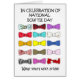 Filas de gravatas de arco de cor diferente, com um pano de fundo branco nítido, e as palavras "Em celebração do Dia Nacional do Arco".