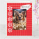 Cartão de Natal vermelho e branco com flocos de neve brancos. Diga ao seu cachorro que eu disse Feliz Natal.