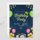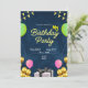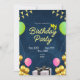 Cartão digital preto de convite de aniversário per